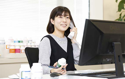 企画開発部には2名の管理栄養士がおり、ドクターやお客様から頂くたくさんの問い合わせに対応しています。質問の内容は、商品に関することから栄養素のことまで幅広く、様々なご質問にお答えしています。
