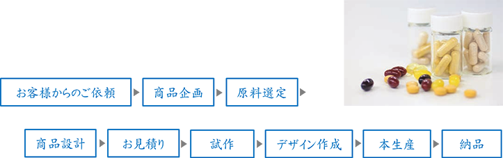これまで医療機関向けサプリメントの開発で培ってきた経験を基に、ドクターの想いを込めたサプリメントのオリジナル設計のお手伝いもいたします。