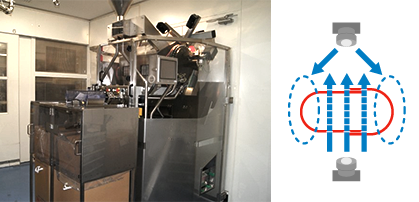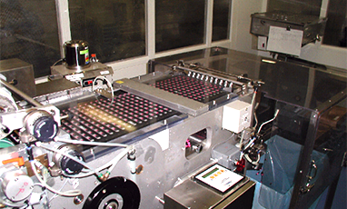 • 内容物(原料混合物)とカプセルを充填機へ送ることでカプセルを作っていきます。充填後の乾燥工程もなく金属探知機および目視検品後、速やかに包装工程へ流すことができるほど製造工程はシンプルです。