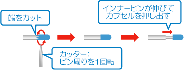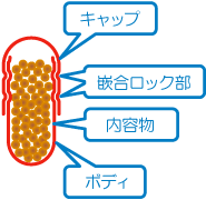 ※カプセルの嵌合は2段階あり、空カプセルの嵌合時に対し内容物充填後はしっかり奥で嵌合します。そのため、キャップが外れて内容物が漏れないようになっています。