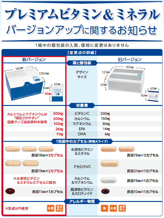2017年6月12日から『プレミアムビタミン&ミネラル』をバージョンアップして販売いたします。